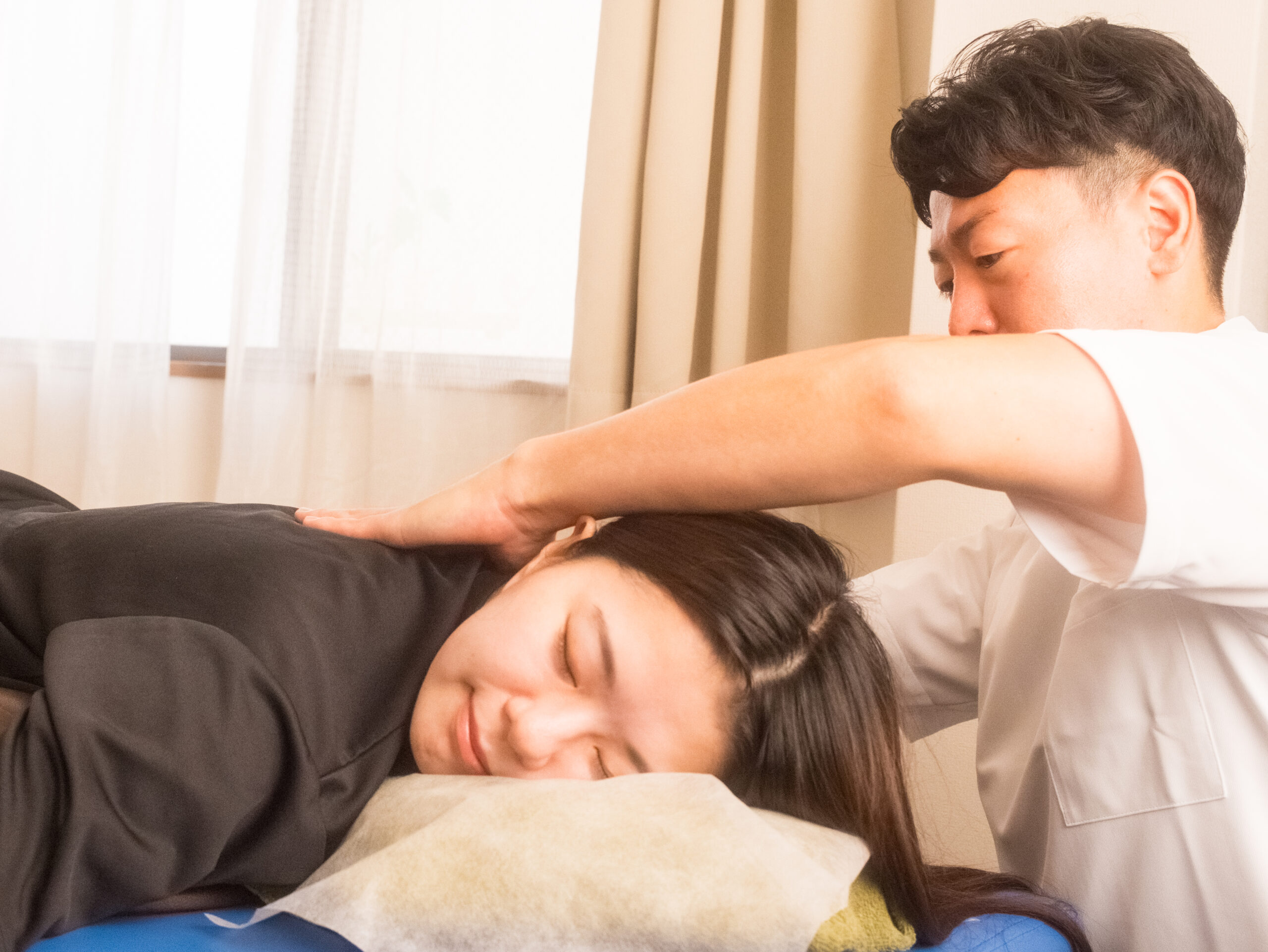 A. 無理に強い力を加える施術は行っていません。筋肉や関節の状態を確認しながら、体に負担の少ない方法で調整していきます。刺激の強さはご希望に応じて調整可能ですので、お気軽にお申し付けください。